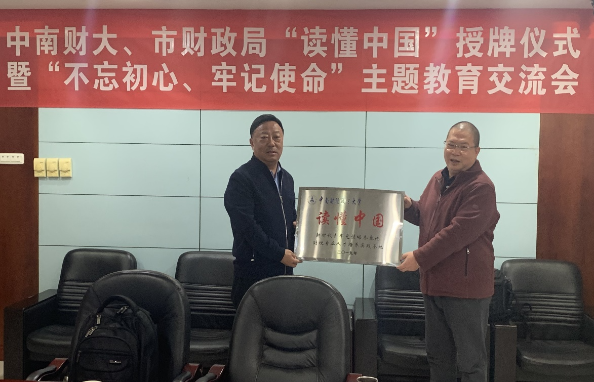 為學習貫徹黨的十九屆四中全會精神,深入開展“不忘初心、牢記使命”主題教育,2019年11月21日下午,學校宣傳部部長周巍、科研部副部長皮海鵬、研究生工作部副部長吳凡、財稅學院黨委書記張永清及財稅學院師生代表一行12人赴洪湖市財政局開展了“讀懂中國—‘新時代青年黨性培養基地’暨‘財稅專業人才培養實踐基地’”(簡稱“雙基地”)掛牌活動。
