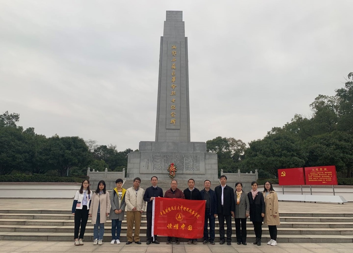 在授牌儀式結束后,全體成員在湘鄂西蘇區革命烈士紀念館開展了紅色教育,向革命烈士紀念碑敬獻花籃,全體師生默哀三分鐘,重溫了入黨誓詞,在洪湖的紅色基因中更深地體會到了作為一名共產黨員的責任與使命。之后,瞻仰烈士紀念碑,表達了對革命烈士深深的敬意。