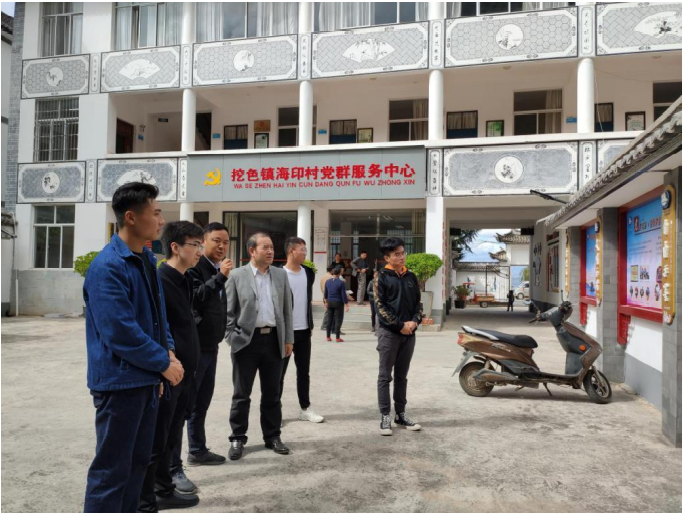 下午調研團隊前往挖色鎮海印村,海印村黨支部書記向調研團隊描述目前鄉村發展的瓶頸以及對專業人才的需求,李波教授為海印村遇到的問題提出了針對性建議。通過第一站的調研,同學們對脫貧攻堅的認知不止局限于文獻內容,更加切實體會到鄉村振興實際面臨的問題,對鄉村振興與財稅支持情況等有了更深入的理解。
