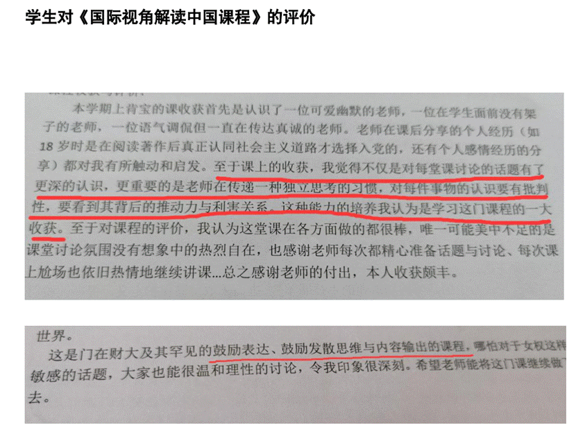 “國際視角解讀中國”的通識教育課程,課程將國內外媒體涉華英文報道作為教學材料,通過多模動態的展現方式介紹中國改革開放以來取得的各項成就,培養學生用英語“講好中國故事”的能力。同時,通過對比同主題下國內外報道在媒體態度、政治傾向以及國家形象構建等方面的異同,引導學生進行批判性思考,進行思政教學。本課程以學生產出為導向,以學生發展為“中心”,立德樹人:塑造正確的“情感”、“態度”和“價值觀”;運用啟發式教學法,強調學生的語言表達、觀點輸出和課堂互動。 本課程旨在強化學生的國際視野,并在了解中國日益增強的國際影響力的基礎上,提升學生身為中國人的民族自尊心、自信心、自豪感,使之真正成為思想政治素質過硬,能經得起國際多元文化沖擊的國際化人才。