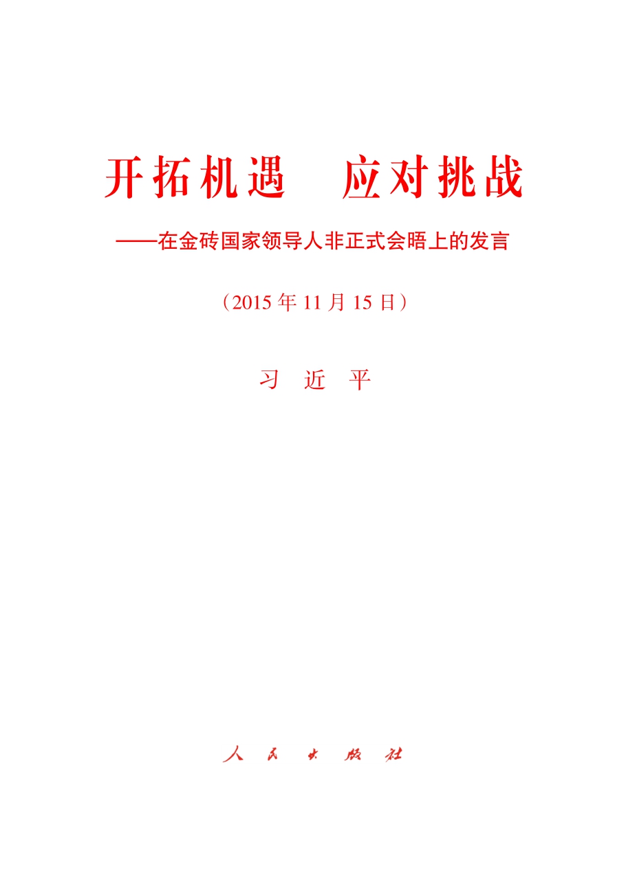 開拓機遇 應對挑戰——在金磚國家領導人非正式會晤上的發言